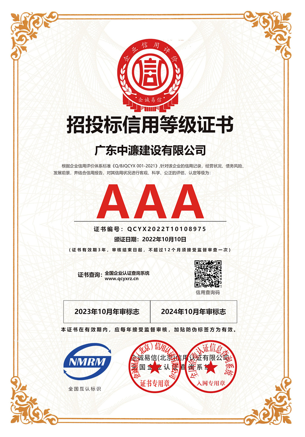 招投标信用等级证书